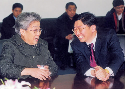 國務院副總理吳儀視察浪莎,與公司董事局主席親切交談