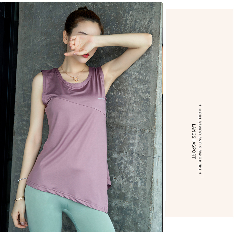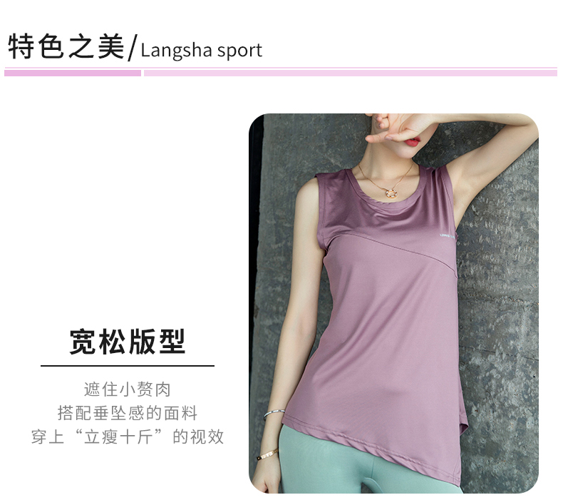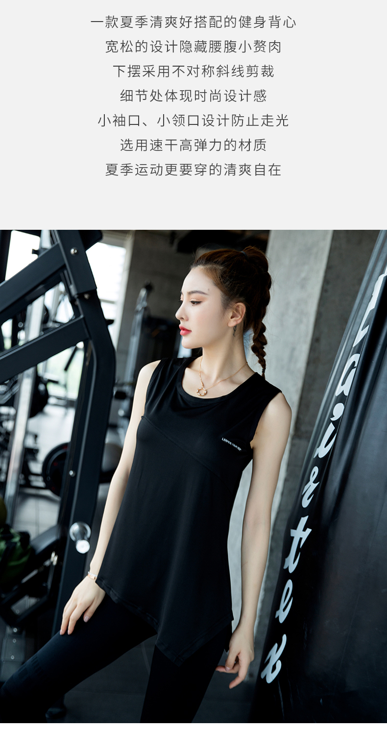 浪莎運(yùn)動(dòng)背心女寬松外穿瑜伽上衣無袖速干T恤跑步時(shí)尚長(zhǎng)健身罩衫