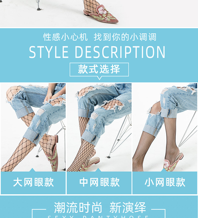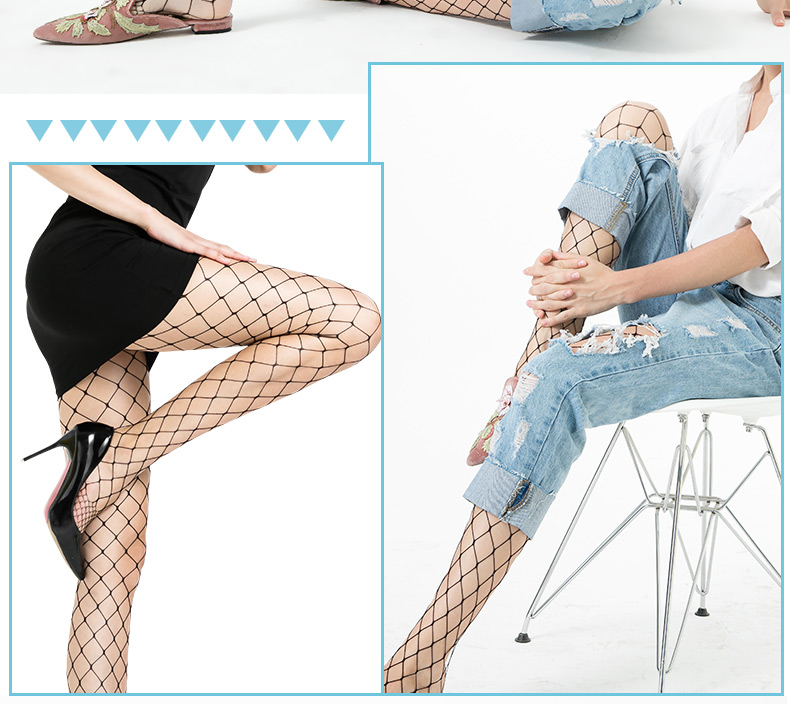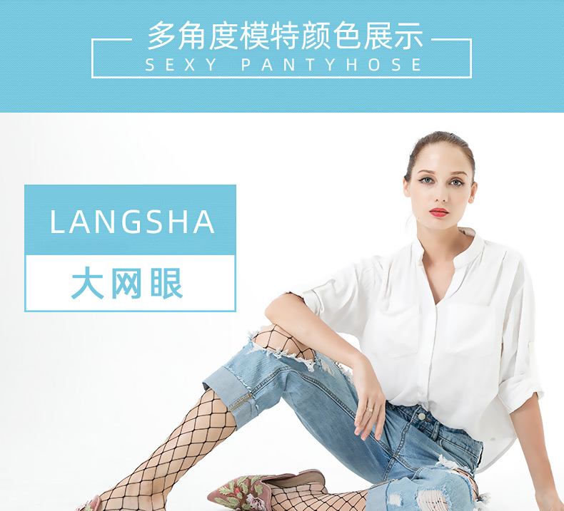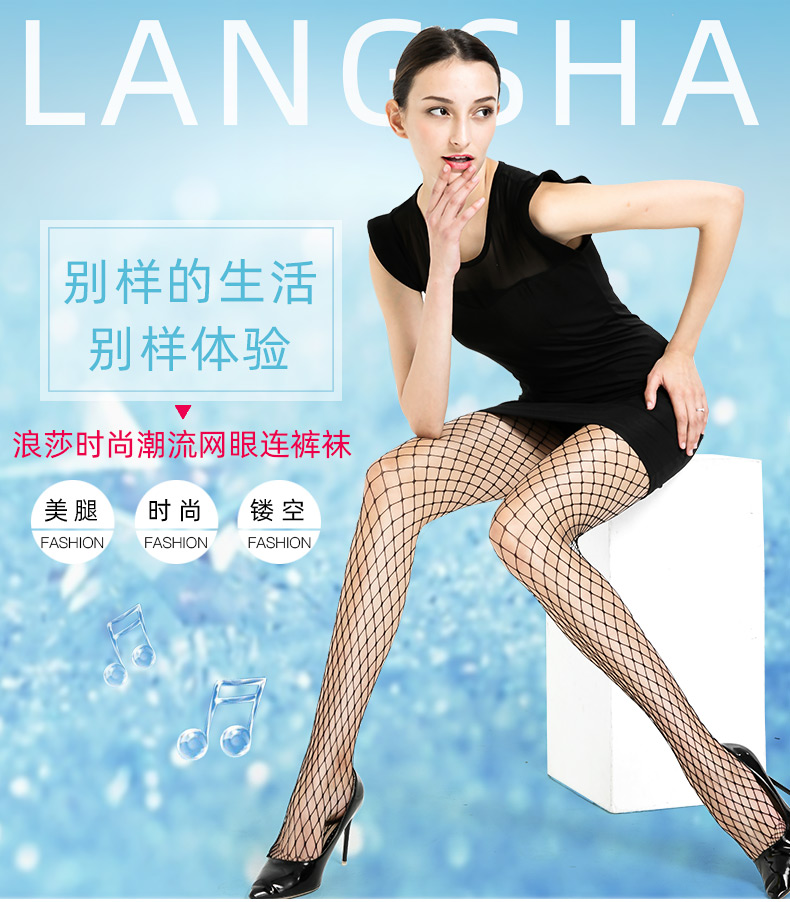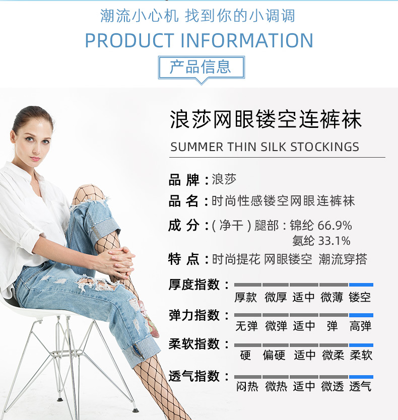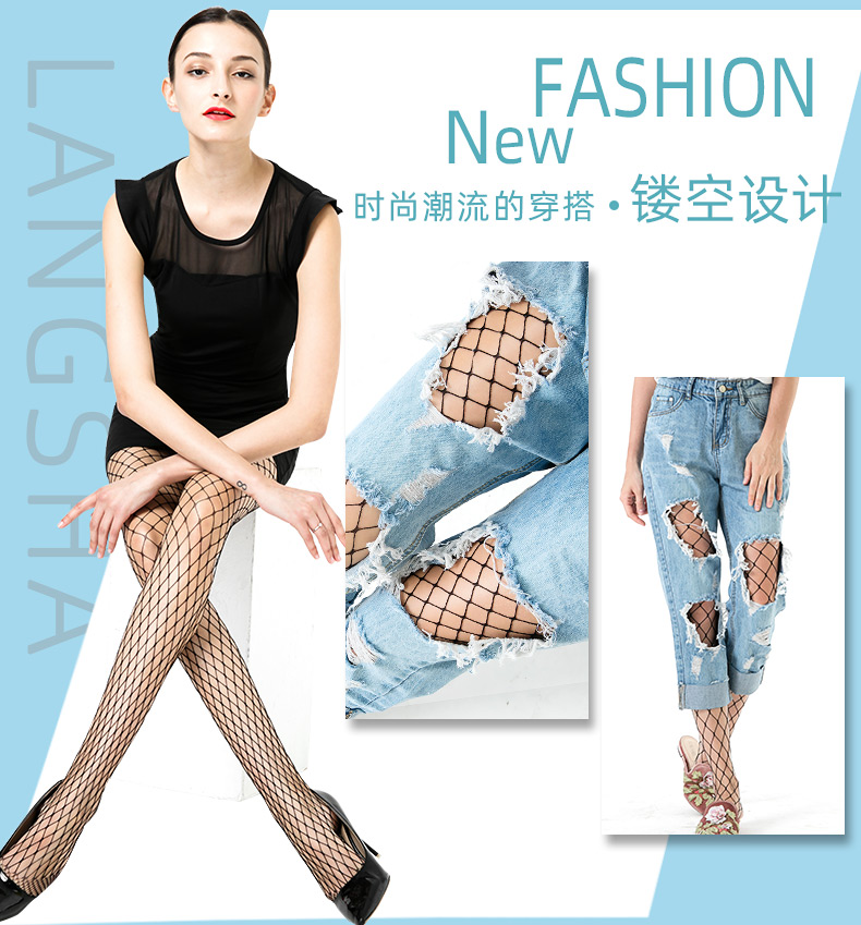浪莎絲襪春夏超薄性感黑絲襪子女 搭配破洞牛仔褲漁網襪連褲襪