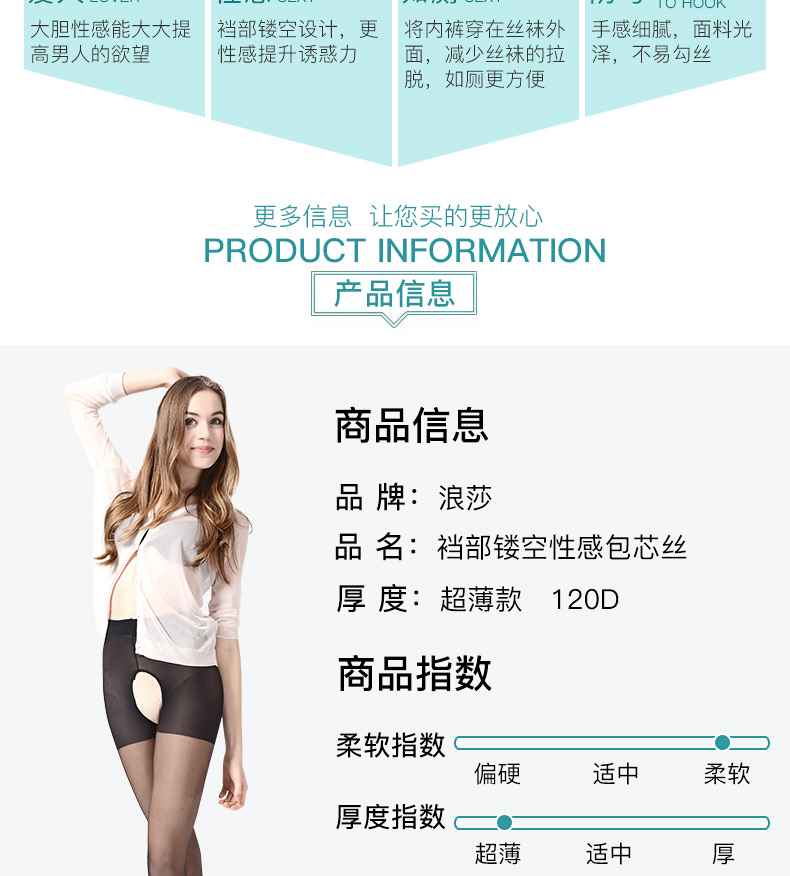 浪莎絲襪女性感襠部鏤空黑絲連褲襪 夏季隱形薄款防勾絲打底襪