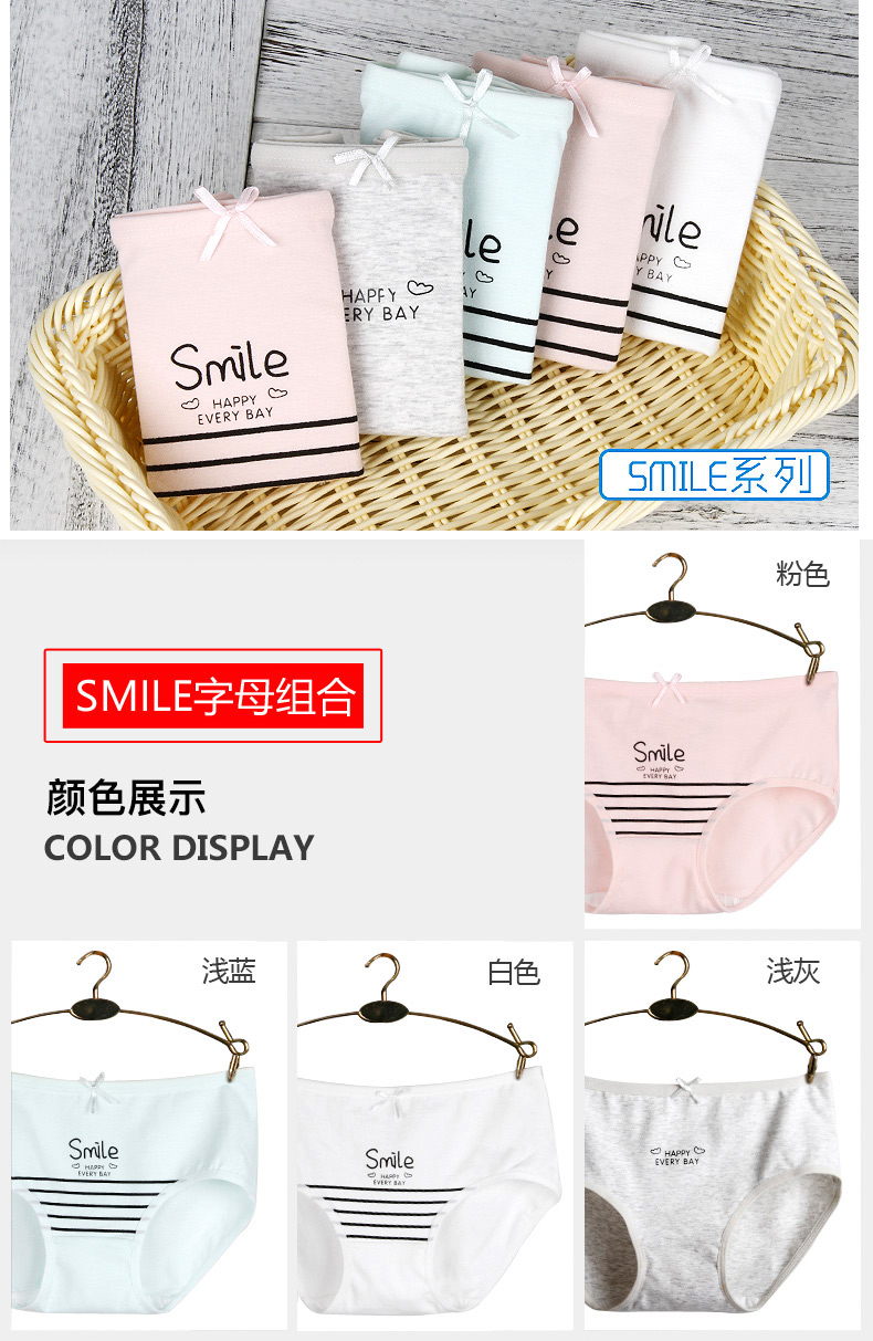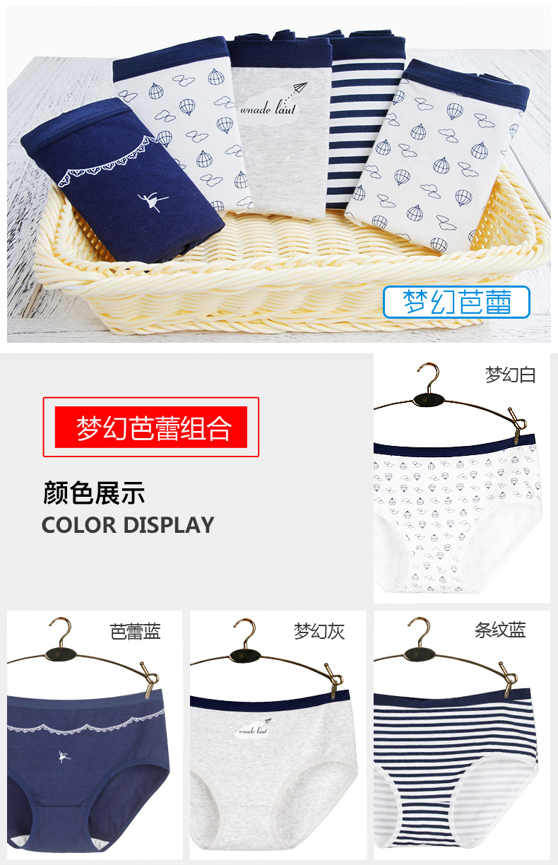 浪莎女士內褲女三角褲中腰春夏少女純棉面料透氣全棉日系女生褲衩