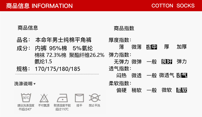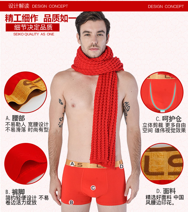浪莎男士內褲男純棉本命年牛四角褲紅色平角褲結婚禮物男式短褲頭